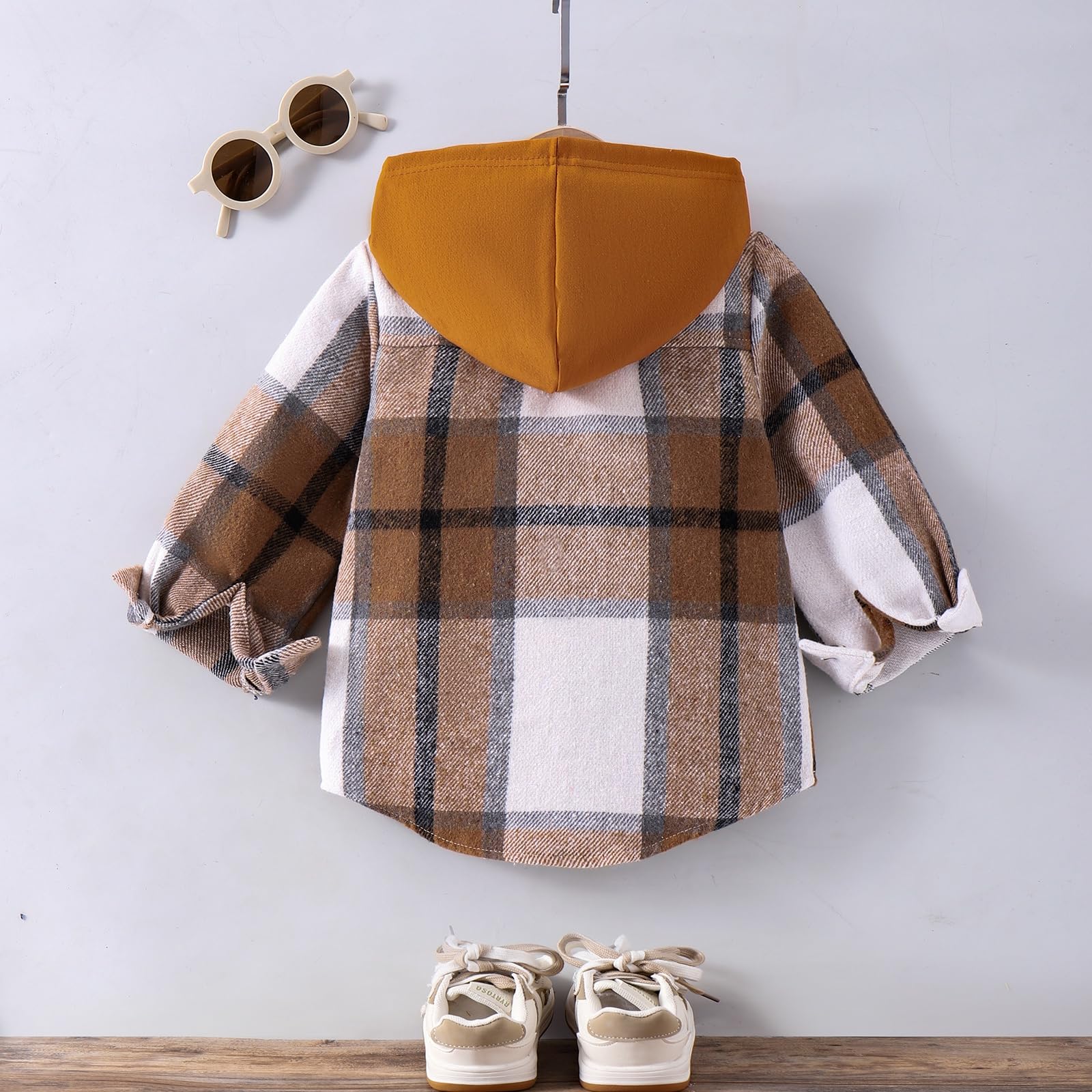 - Unique Design: Featuring a trendy hooded plaid design, this shirt combines style with individuality, ensuring your child stands out in any crowd. The unique arched hem adds a dynamic and fashionable touch, while the refined buttons not only make dressing easy but also enhance the overall quality and look of the shirt.